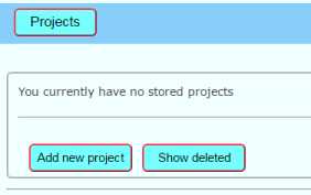 If you've previously saved projects you'll see them listed in reverse date order. The buttons below let you open, delete, copy, rename or download the selected project, add a new project or view any projects previously marked for deletion.