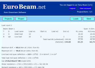 Why? Perhaps you're away from base and need to run a quick check on a beam: if you have internet access, you can access EuroBeam.net and immediately do a basic check. Later, back at base, EuroBeam will open your EuroBeam.net project, allowing you to do a more rigorous check and save it locally.